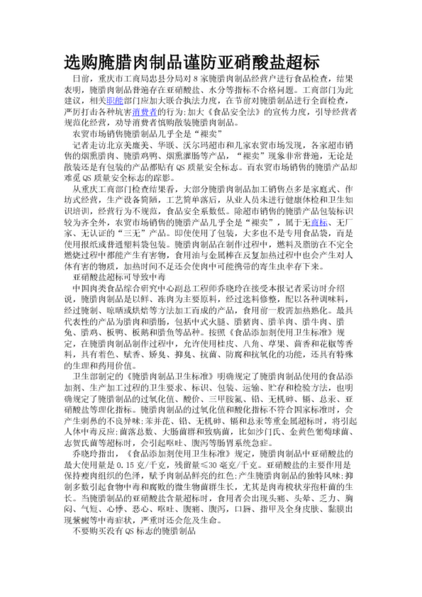 選購腌臘肉制品謹防亞硝酸鹽超標(22.22KB)