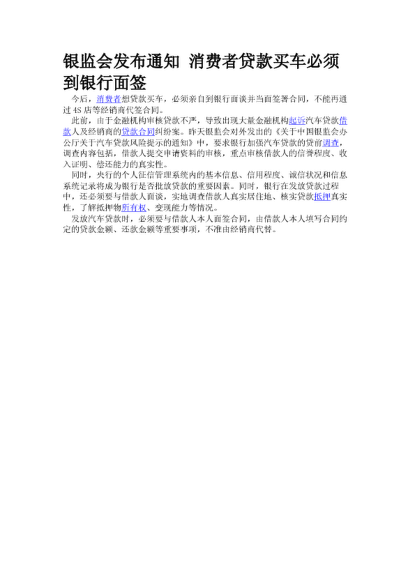 銀監會發布通知 消費者貸款買車必須到銀行面簽