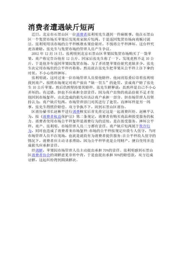 消費者遭遇缺斤短兩