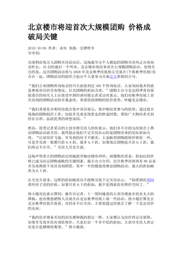 北京樓市將迎首次大規模團購 價格成破局關鍵(5.51KB)