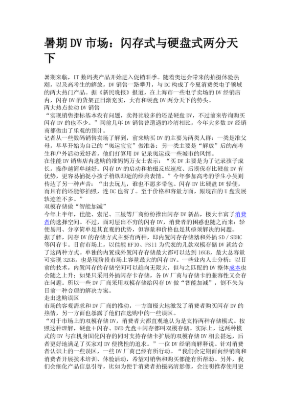 暑期DV市場:閃存式與硬盤式兩分天下(21.25KB)