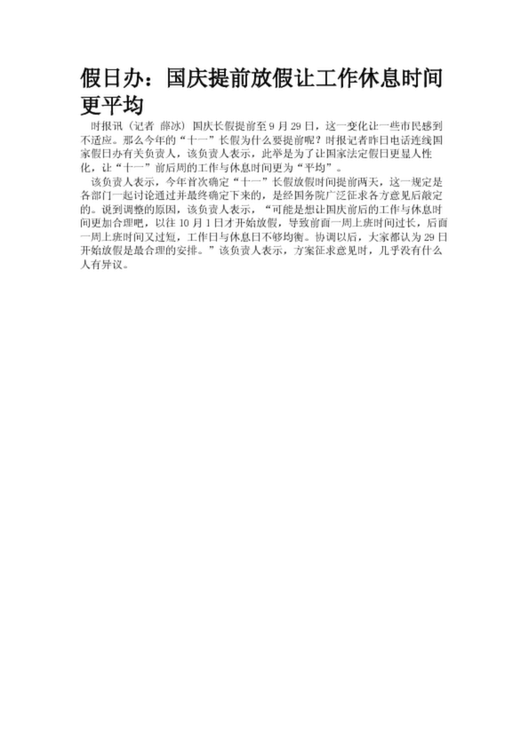 假日辦:國慶提前放假讓工作休息時間更平均(16.01KB)