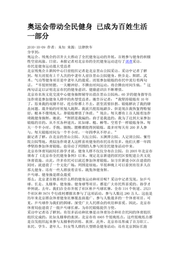奧運會帶動全民健身 已成為百姓生活一部分